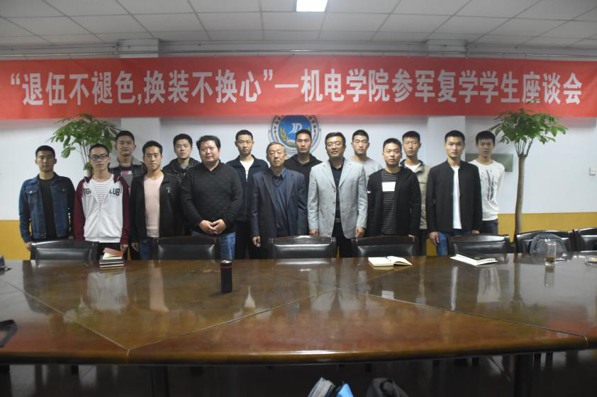 于学院会议室举办“退伍不褪色,换装不换心”参军复学学生座谈会,院党委书记李世欣、院党委副书记刘海涛、校特邀党建员余泳昌、团委书记王辉出席座谈会,参军复学的12名学生参加座谈会,会议由党委副书记刘海涛主持。