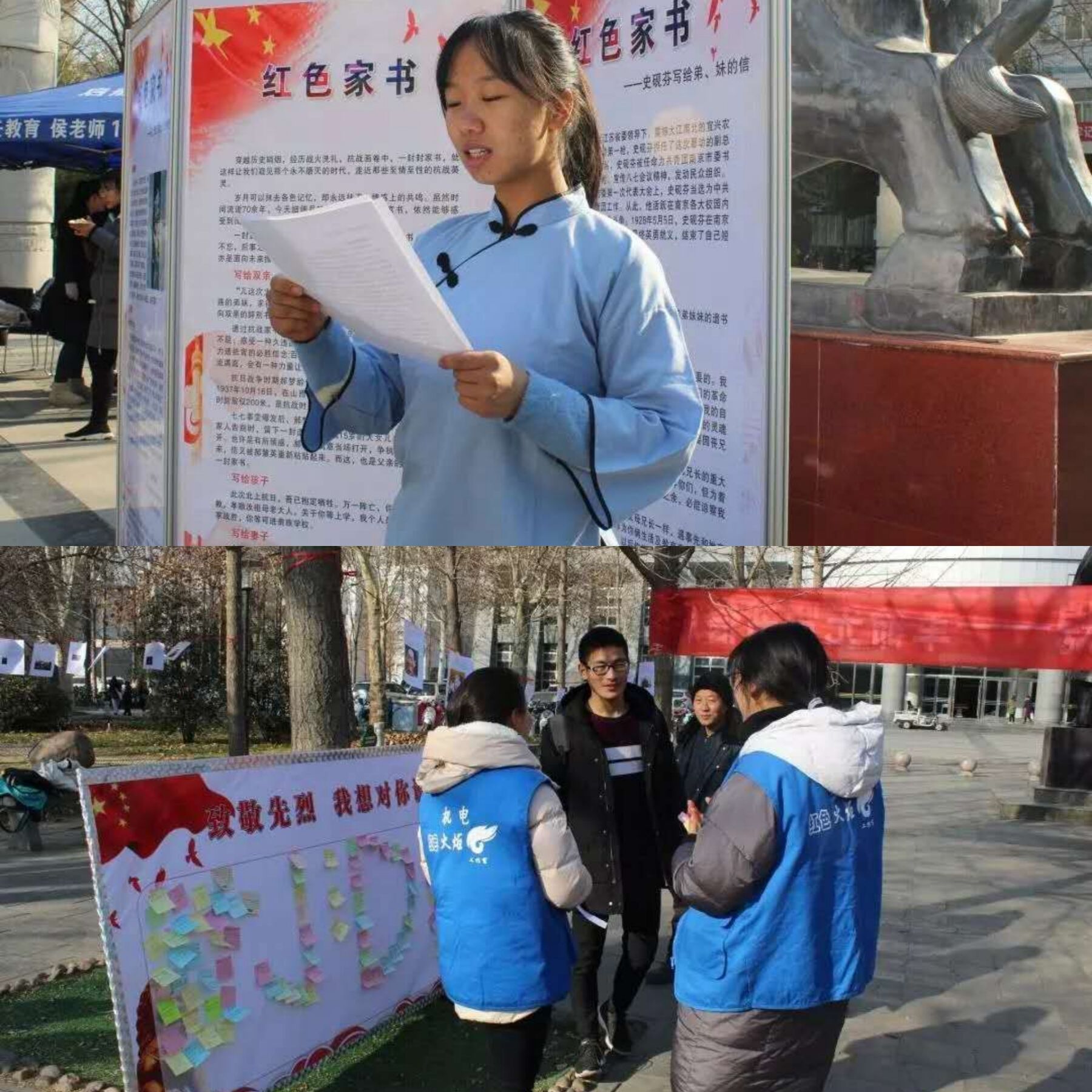 活动现场通过宣传展板等,展示了史砚芬、夏明翰、杨开慧、赵一曼等革命先贤写给家人及朋友的书信,介绍了他们当时革命背景及为国家所做出的贡献,展现了动荡年代英雄滚烫的赤子之心,表达了对革命先辈的敬意,使大家对革命先贤和红色文化有了更深刻的了解。同学们通过朗诵这些英雄的家书来走进他们的世界,聆听他们内心的声音,感受他们为国家光荣战斗的决心和对亲人的思念之情。本次活动形式多样,内容丰富,同学们热情洋溢,积极参与每项活动。他们根据主持人发放的带有英雄人物生平事迹线索的纸条猜英雄人物,唱《打靶归来》、《义勇军进行曲》等红色歌曲来体会其中的思想,弘扬红色经典文化,感受革命精神。