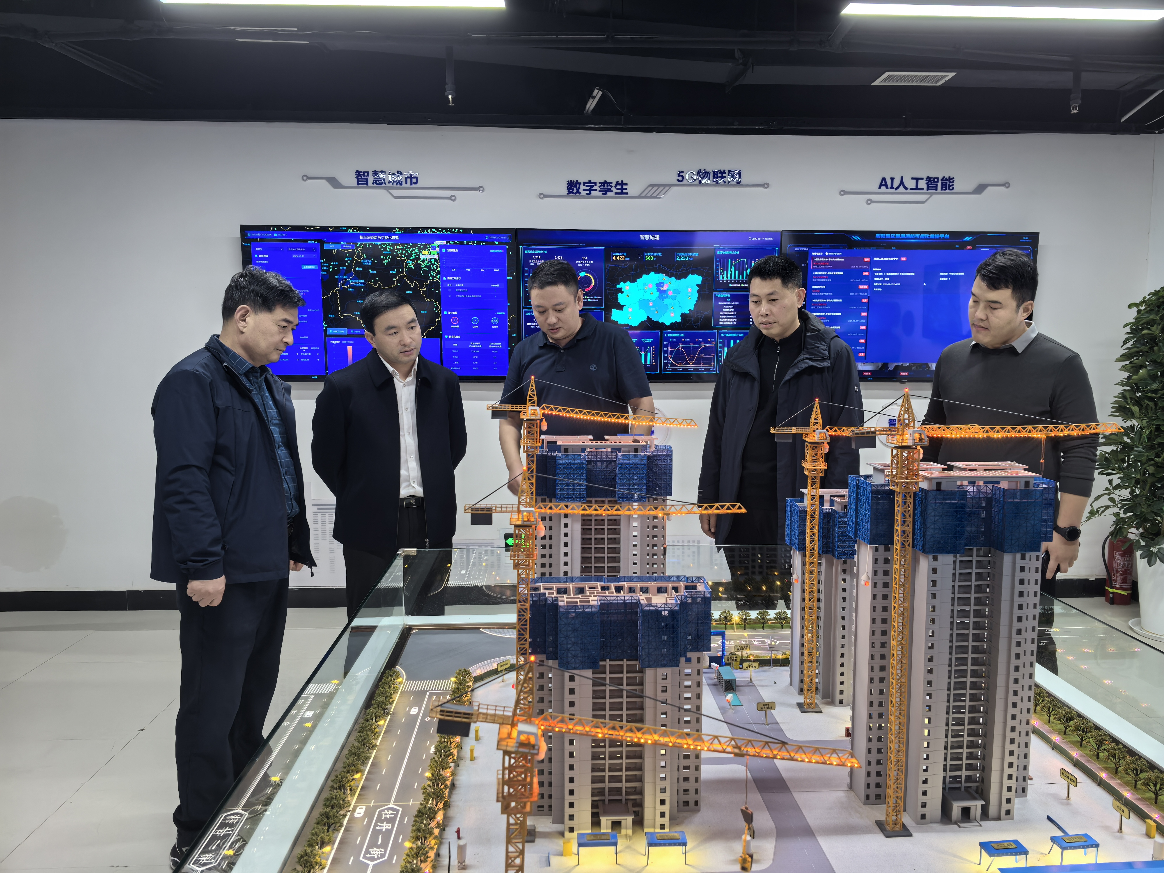 期间,贾云飞、李炳军一行在陈王刚的陪同下参观了智慧化平台建设沙盘,并现场观看了智慧工地环境监测平台演示。(文:兰明明/图:李志华 审核:王振锋)