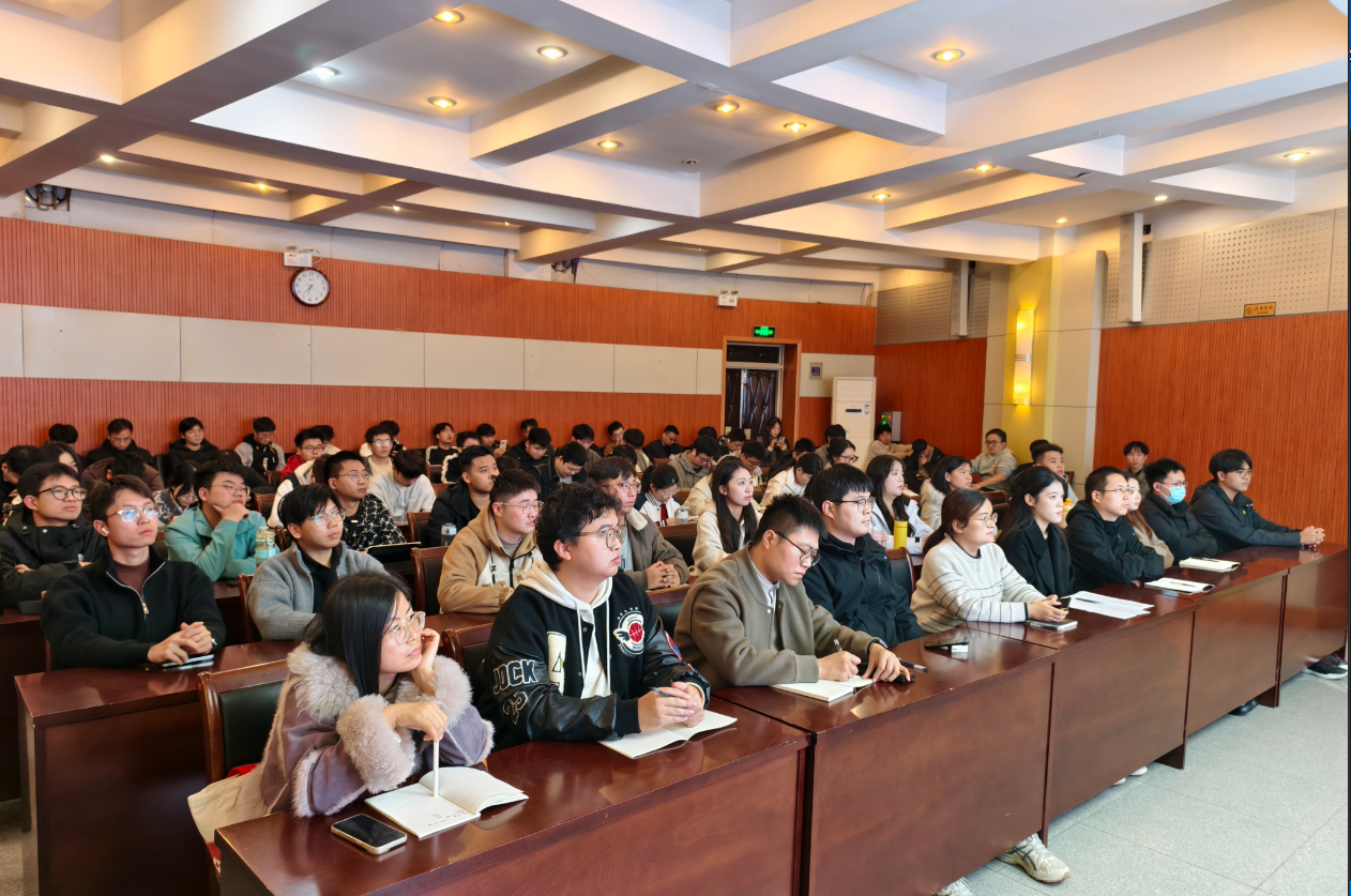 青年教师陈炳霖博士主讲,研究生辅导员李锦和全体2025级研究生参加讲坛,讲坛由研会主席吴亮衡主持。