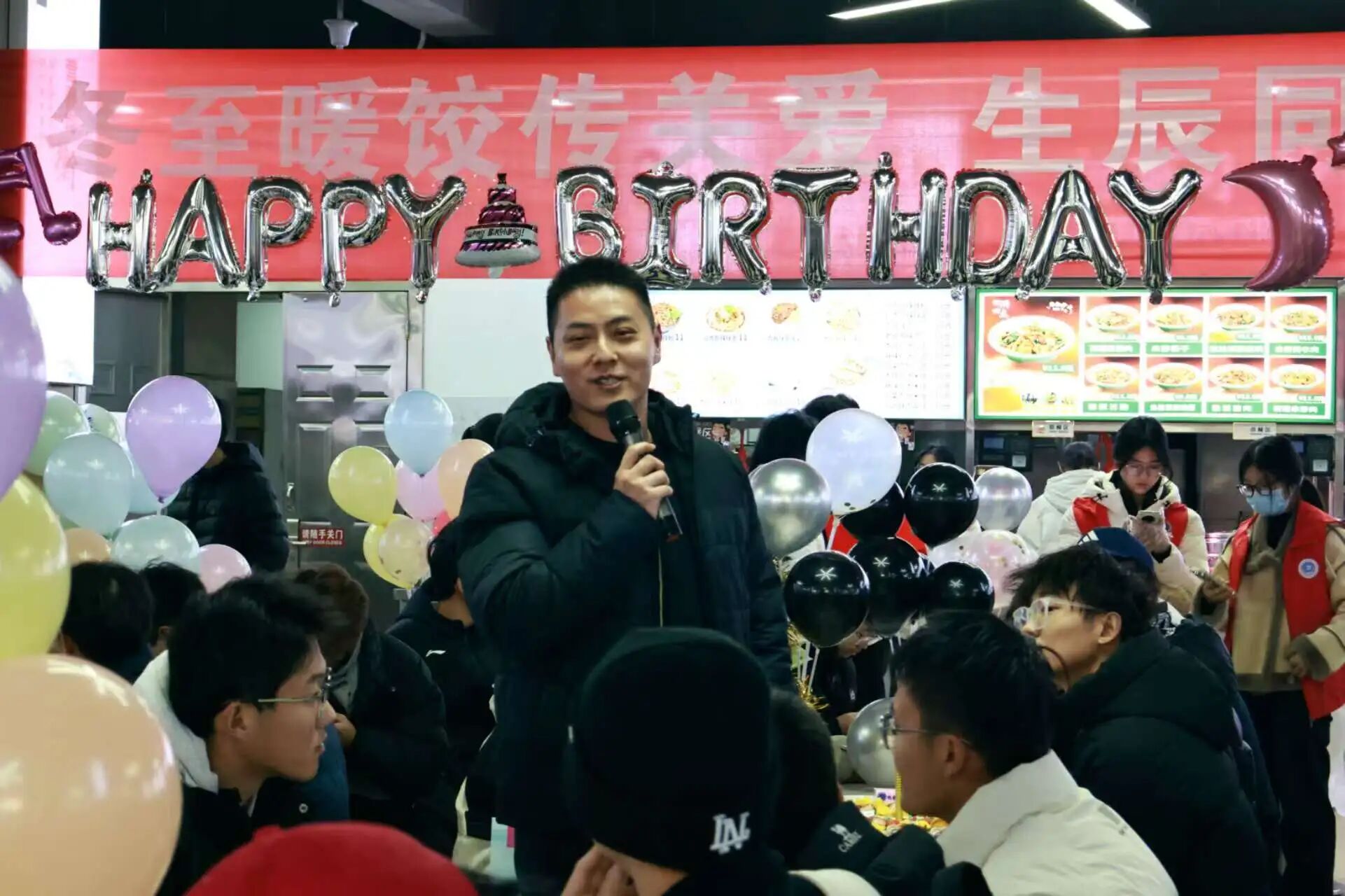 活动伊始,李锦老师登台致辞,阐释活动传承传统节日文化与传递学院关怀的双重价值。他以冬至饺子的团圆意蕴、生日会的成长祝福为引,祝愿同学们在校园中收获真挚情谊与温暖陪伴,为全体同学送上冬至安康的问候,也向12月寿星表达了最诚挚的生日祝福。