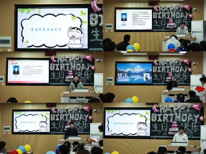 接着周禧盈、倪志斌、高若馨三位优秀的学长学姐依次上台,分别分享了学习方法、军旅成长与海外交流经历,为新生未来发展提供有益参考;寿星代表黄永康、宋昊阳依次发言,真诚感谢学院的悉心关怀与同窗的温暖陪伴。